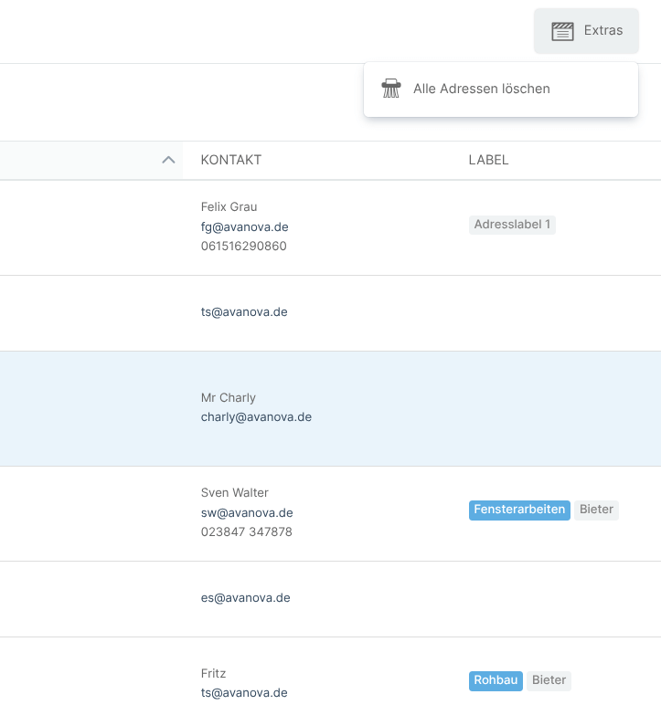 Modul Adressbuch: Das Löschen von Adressen wurde um die Option “alle Adressen” erweitert.