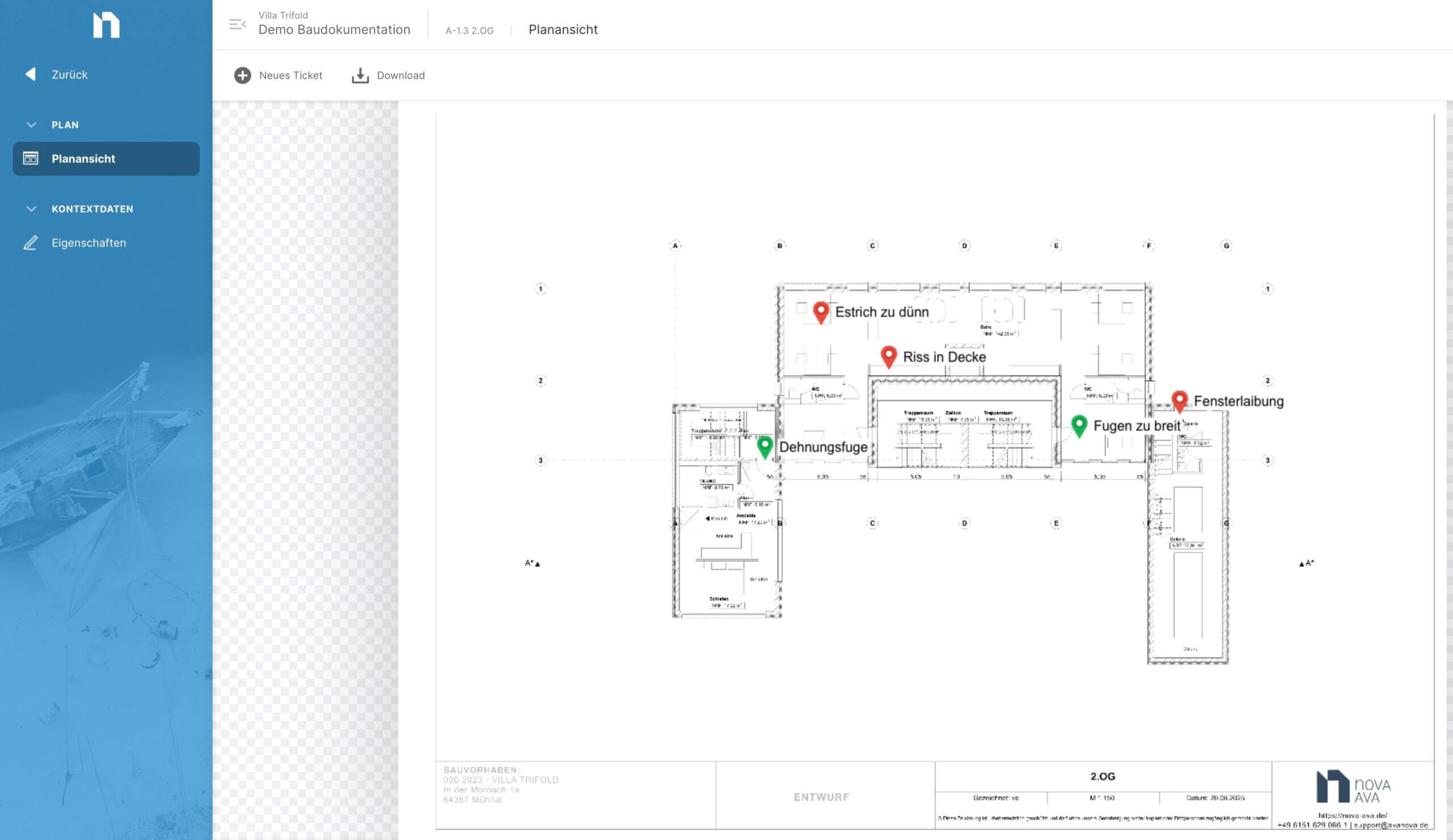 Und natürlich fallen dir jedes Mal wieder Sachen auf, die noch gemacht werden müssen, oder in Ordnung gebracht werden müssen. Du weißt, dafür gibt es in NOVA AVA Tickets. Und klar, auch ins Bautagebuch kannst du direkt Tickets verlinken.